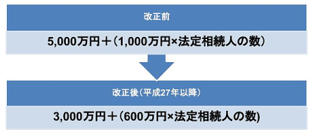平成27 年から相続税が改正され基礎控除の減額や相続税率の引き上げが行われました。基礎控除が表のとおり60%に減額されました。